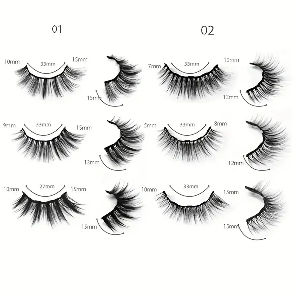 12 pairs of magnetic false eyelash sets, with eyeliner, natural makeup effect, reusable, curling magnetic eyelash sets